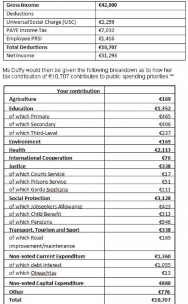 LEGISLATION THAT WOULD allow each taxpayer to receive an annual statement which would detail how much tax they paid and where it is being spent by the government will be debated in the Dáil today.