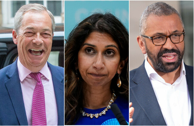 Nigel Farage, Suella Braverman, James Cleverly. Alamy Stock Photo