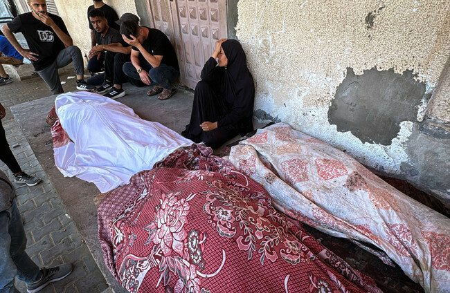 Mourners at Al-Aqsa Martyrs Hospital in Deir al-Balah in recently Alamy Stock Photo