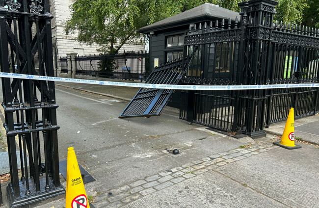 A few minutes later, a garda on duty at the rear of Leinster House heard a loud crash, then metal hitting the ground. He saw a vehicle reversing from the gates towards Merrion Street Upper.