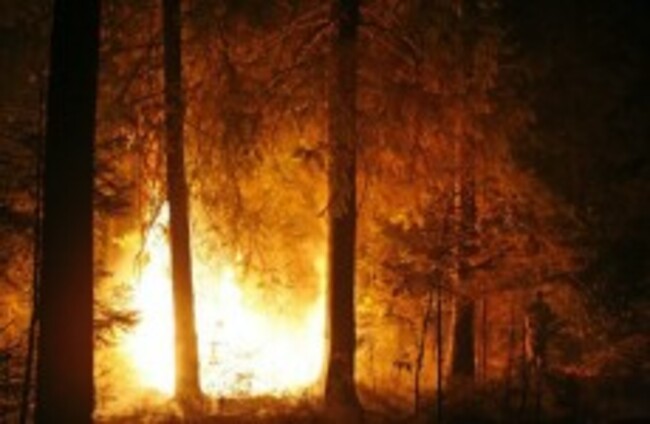 A forest fire edging close to the village of Kovrigino, near Moscow, Aug 13, 2010. Pavel Golovkin/AP/Press Association Images