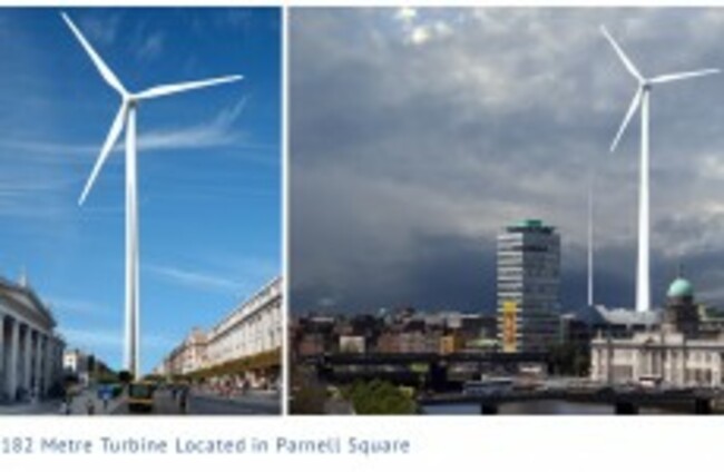Artist's impression of a wind turbine in Parnell Square Wind Aware Ireland