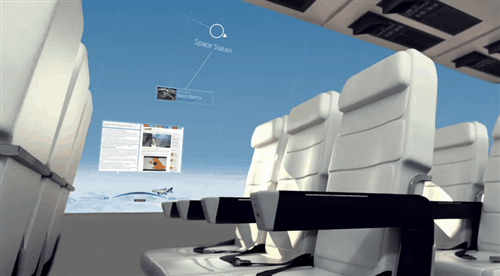 Instead of windows, the walls are lined with interactive touch screens which display images from outside the plane as well as on board services.