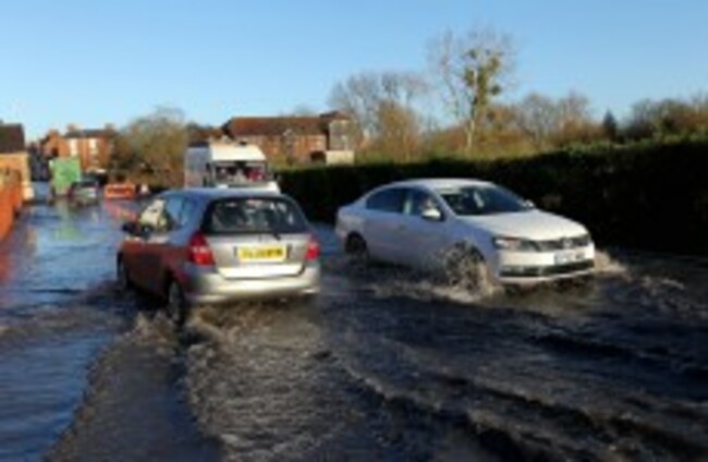 Cars make their way through flood water on Pershore High Street in Pershore, Worcestershire, as south-west Britain comes to terms with severe storms and flooding. David Davies/PA Wire