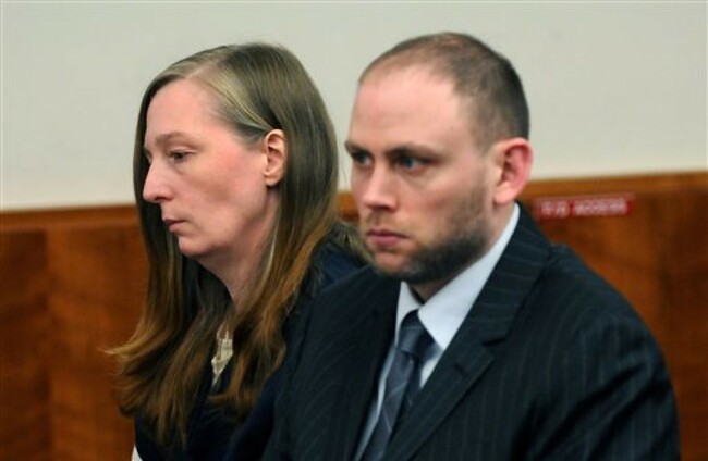 (FILE PHOTO) Stacey Castor, left, and her attorney Charles Keller listen in Syracuse, N.Y as she is sentenced in 2009. AP