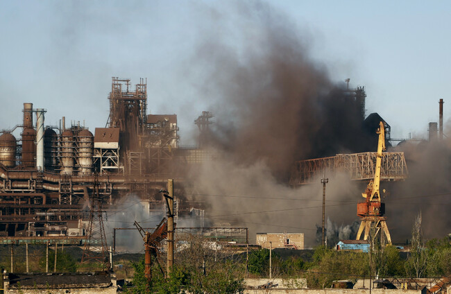 Smoke rises from the Metallurgical Combine Azovstal in Mariupol during shelling. Alexei Alexandrov/PA