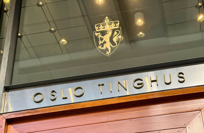 View of the entrance to the Oslo courthouse, where the Oslo District Court is located Alamy Stock Photo