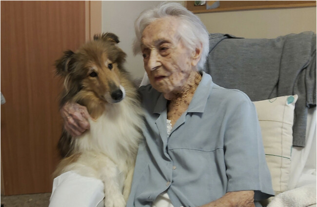 Maria Branyas Morera pictured with pet 'Fairy' last year Maria Branyas Morera