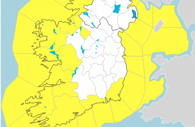 Met Éireann said there would be “unseasonably wet and windy” weather in counties Clare, Cork, Kerry, Limerick, Waterford, Donegal, Galway, Leitrim, Mayo, Sligo, and Wexford.