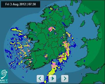 So far, so good(ish): Met Eireann’s rainfall radar at 7.30am today. (Image: Met Éireann)
