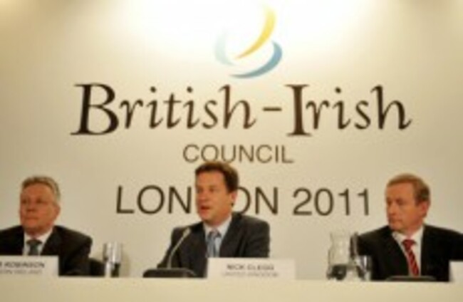 London, June 2011: NI First Minister Peter Robinson, Deputy PM Nick Clegg and Taoiseach Kenny at the last summit. John Stillwell/PA Archive/Press Association Images