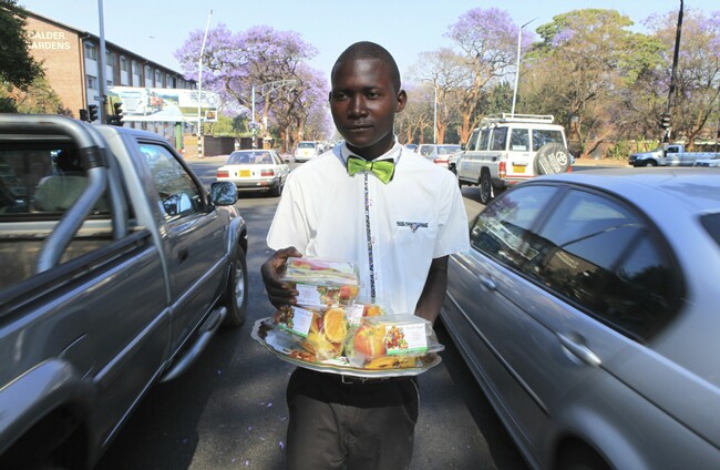 Farai Mushayademo Farai Mushayademo, a street vendor, prepares to sell water and potato chips to motorists in Harare Tsvangirayi Mukwazhi Tsvangirayi Mukwazhi